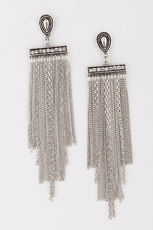 - * Oval Shaped Chained Drop Earrings with Rhinestone Detail 5ICG5 * 11" approx.