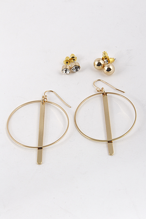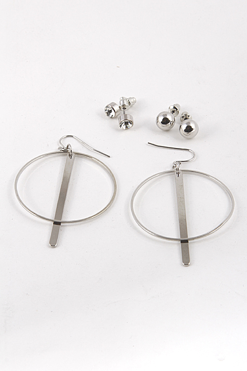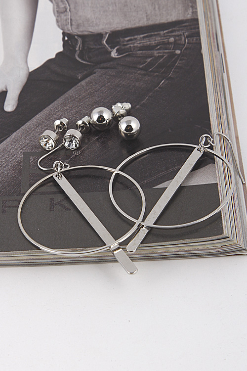 - * Double Stud Bar Hoop Set Earring 5ACJ12 * .2 x .2/ .3 x .3/ 1.5 x 2" approx.