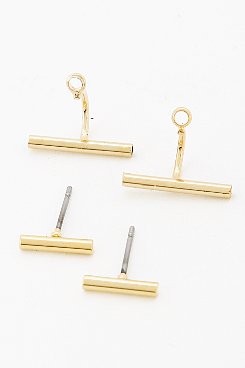 - * Horizontal Two Piece Bar Stud Earring 5FCF2 * .5 x .4" approx.