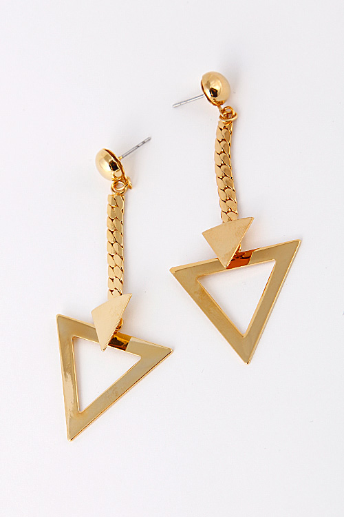 - * Flat Chain Dangling Triangle Earring 5DBH7 * 1.2 x 3" Approx.