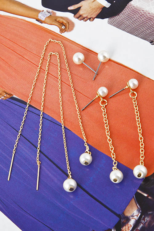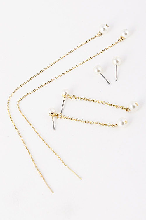 - * Mini Pearl Chain Dangle Set Earring 5CAD4 * .2 x 2/ .2 x 5.5/ .2 x .2" approx.