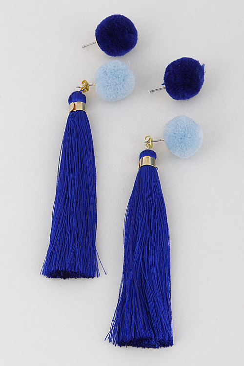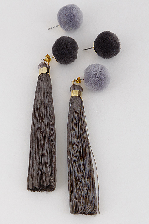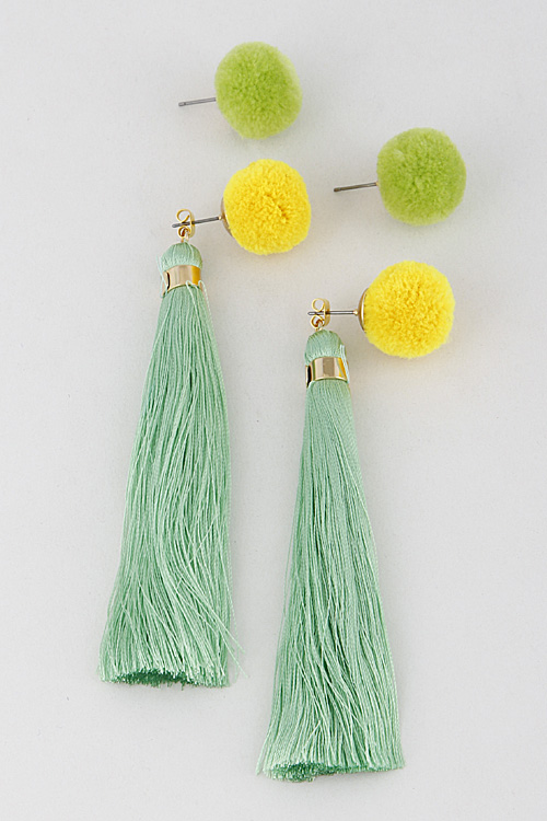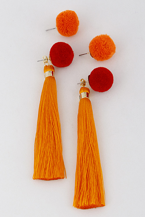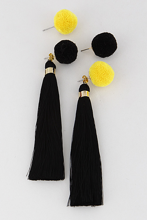- * Pom Pom Tassel Earrings 7CBB4 * 0.8 X 5" approx.