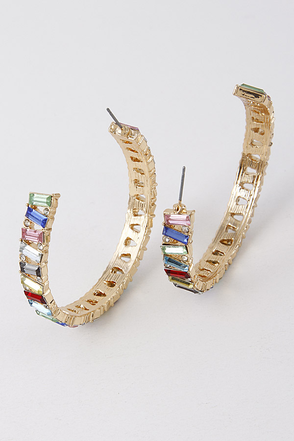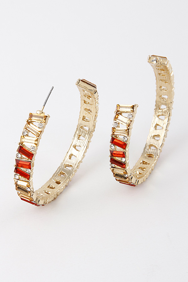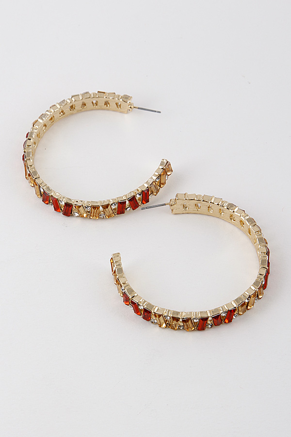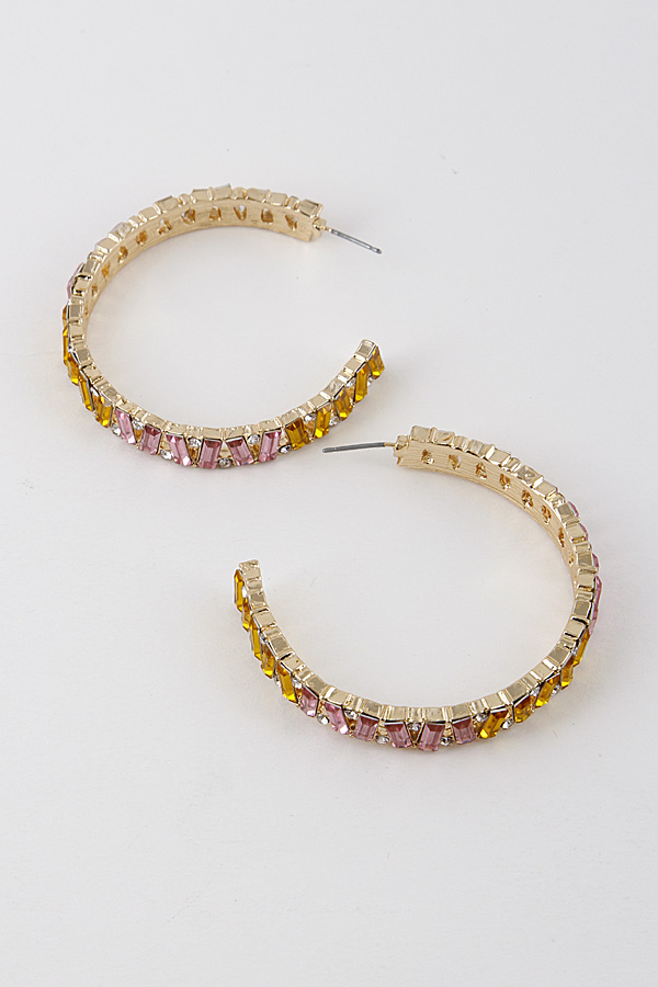 - * Rhinestone Inset Hoop Earrings 9EBA1