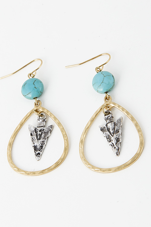 - * Arrowhead Dangle Teardrop Cutout Bead Earring 5EAE1 * 1.1 x 2.1" approx.