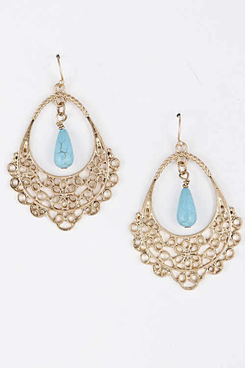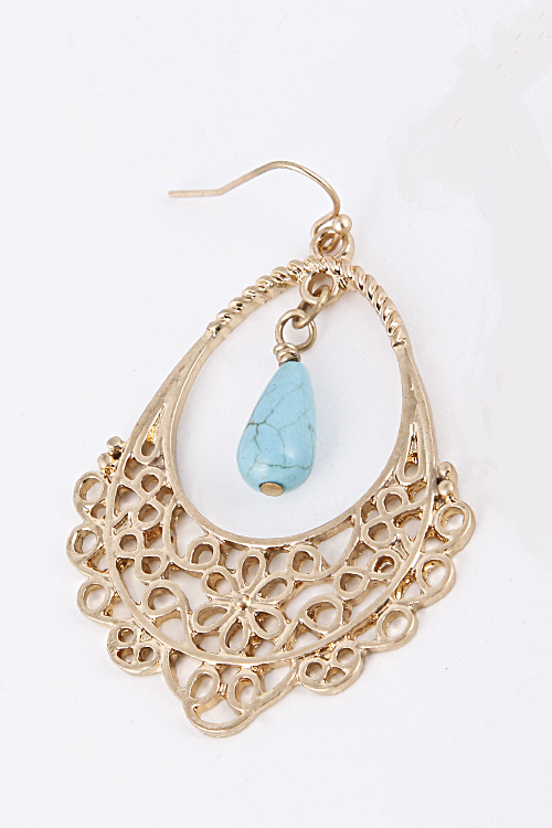 - * Teardrop Dangle Turquoise Stone Bead Attached Earring 5GAJ4 * 3" approx.