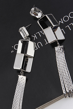Two Squares Linked Earrings with Tassel and Rhinestone Detail 5LBD4
