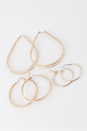 Mixed Hoop Earrings with Patterned Detail 5JAD10