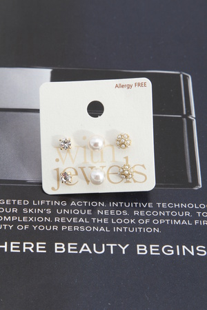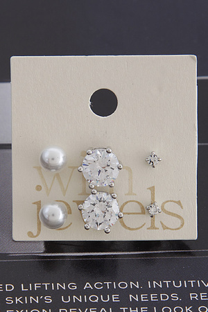 Pearl and Rhinestone Cute Earring Set 5LCE7