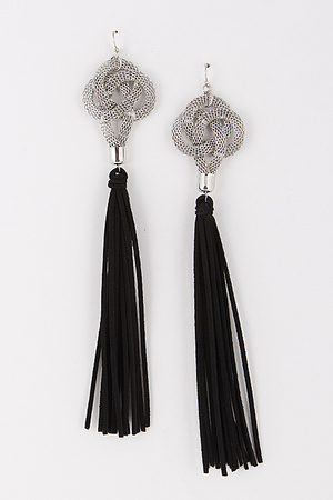 Round Earrings with Faux Suede Tassel Detail 5JCE13