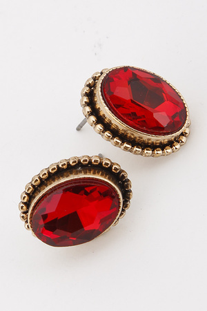 Antique Oval Faux Gem Stone Earrings 5KAD4