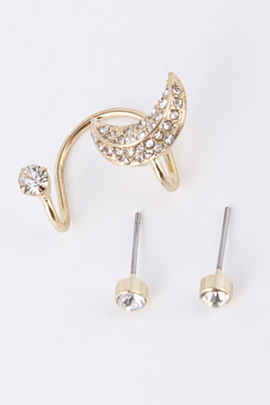 Crescent Moon Rhinestone Cuff Stud Earring 5GAJ4
