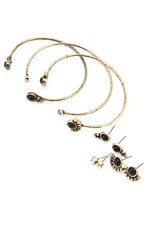 Black Half Moon Bead Earring And Bracelet Set 5FDA4