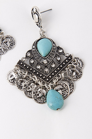 Teardrop Turquoise Stone Coin Dangle Earring 5FBH2