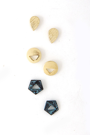 Triangle Polygon Star Cutout Trio Stud Set Earring 5FCC8
