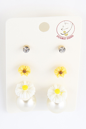 Daisy Floral Cut Pearl End Stud Set Earring 5FBH1