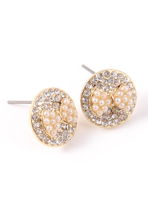 Pearl Ribbon Embedded Stud Earring 5FBH4