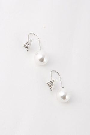 Triangle Rhinestone Studded Hook Pearl Earring 5FBH2