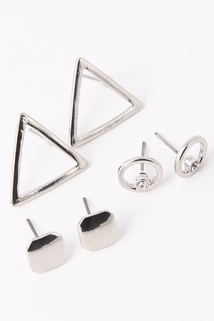 Triangle Circle Square Rhinestone Three Piece Set Earring 5ECI7