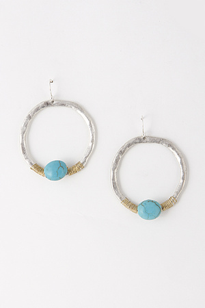 Turquoise Stone Wired Circle Dangle Earring 5FAD3