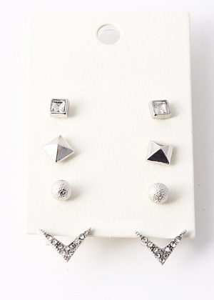 Multi Triangle Circle Rhinestone Stud Four Piece Set 5ECI4