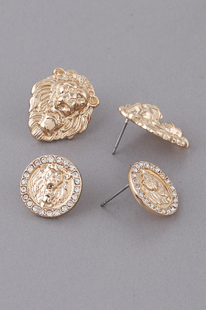 Lion Emblem Stud Earrings Set