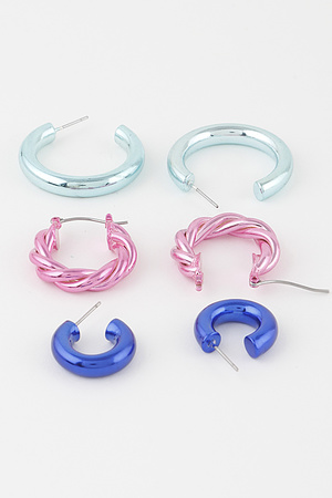 Multi Shiny Hoop Earrings Set