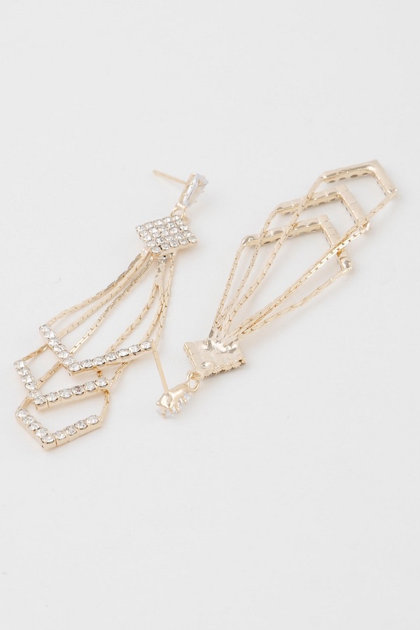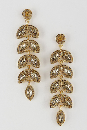 Drop Earrings With Leaf And Rhinestones 6HCI1