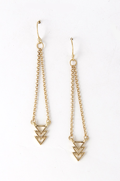 - * Three Triangle Lapsed Chain Dangle Earring 5FCC7 * .4 x 2" approx.