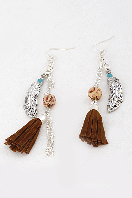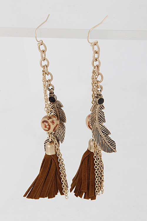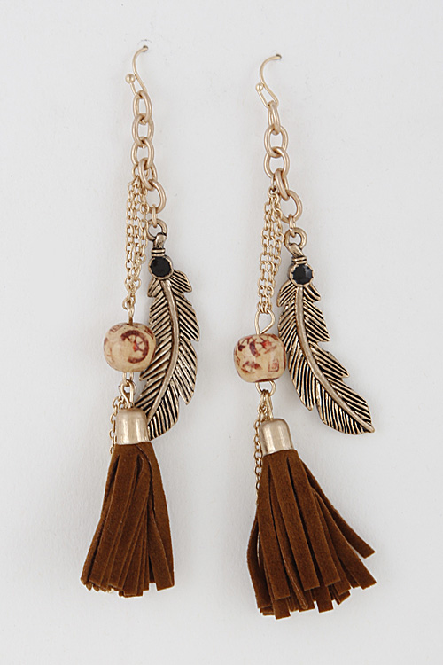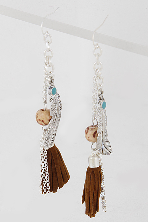 - *Aztec Feather Charm Earrings 5LAE6 * 4'' approx.