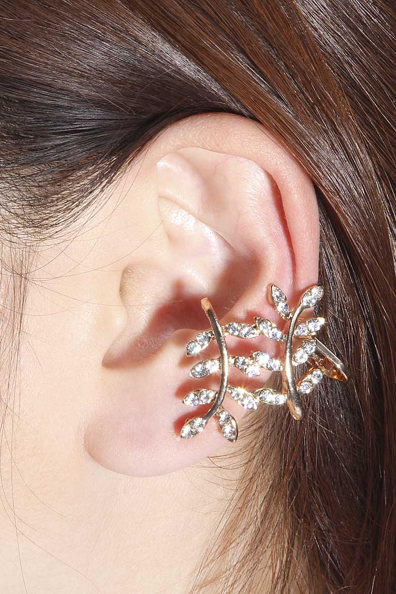 - * Leaves Ear Cuff Rhinestone Earring 4GDA5 * 1 x1" approx. * Made in Korea.