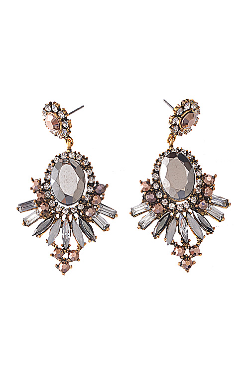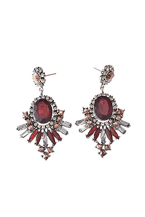 - * Rhinestone Surrounded Jewel Dangle Earring