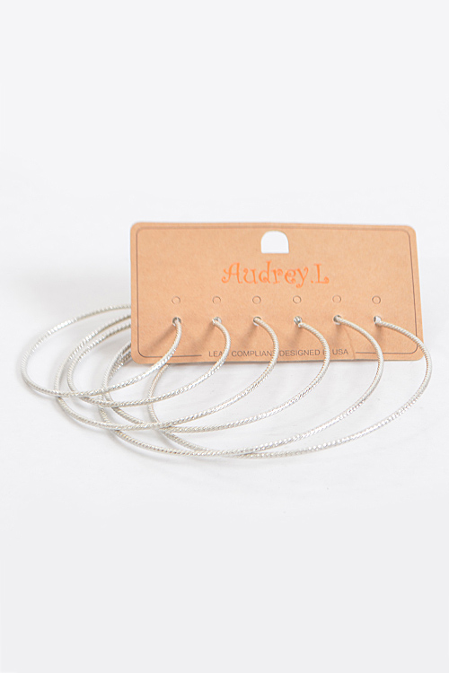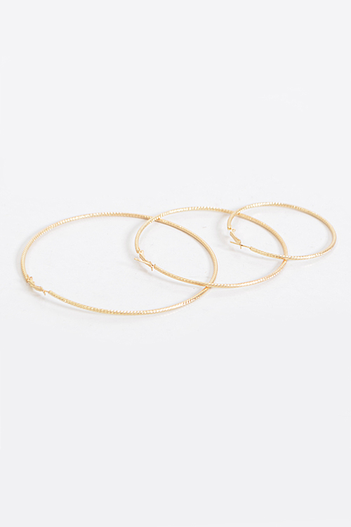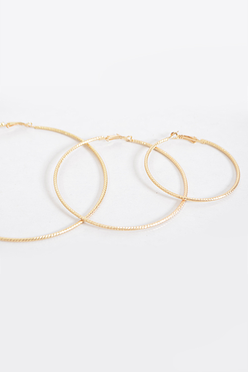 - * Thin Lightly Patterned Earrings Set * 2.3 x 2.3" approx. * 3.1 x 3.1" approx. * 3.9 x 3.9" approx.