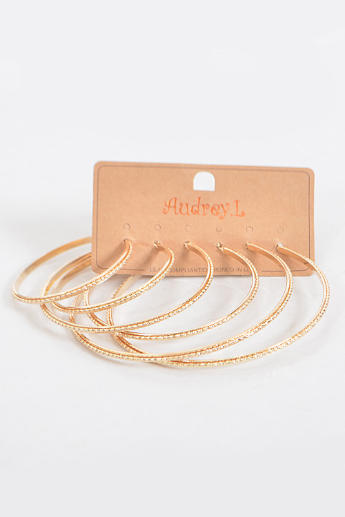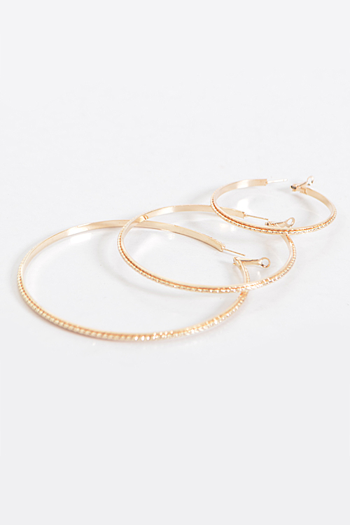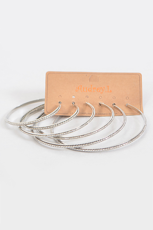 - * Patterned Thin Glitter Hoop Earrings Set * 2.3 x 2.3" approx. * 3.1 x 3.1" approx. * 4 x 4" approx.