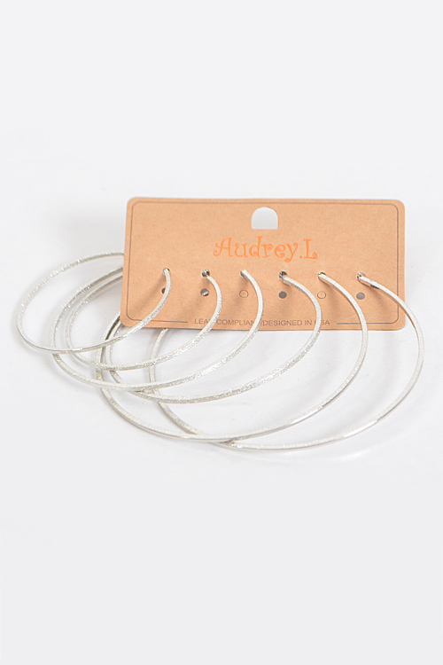 - * Thin Glitter Hoop Earrings Set * 2.3 x 2.3" approx. * 3.1 x 3.1" approx. * 3.9 x 3.9" approx.
