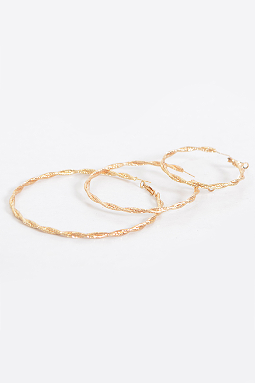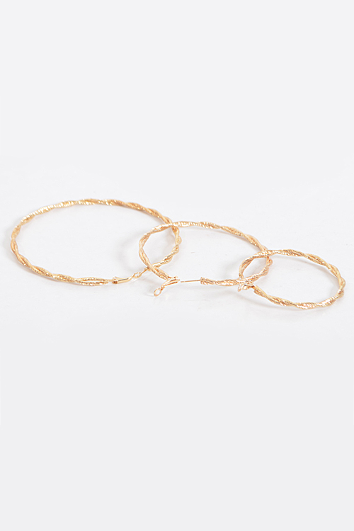 - * Shiny Yet Twisted Hoop Earrings Set * 2.25 x 2.25" approx. * 3 x 3" approx. * 4 x 4" approx.