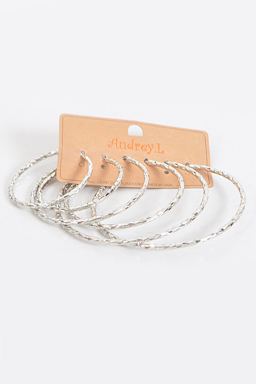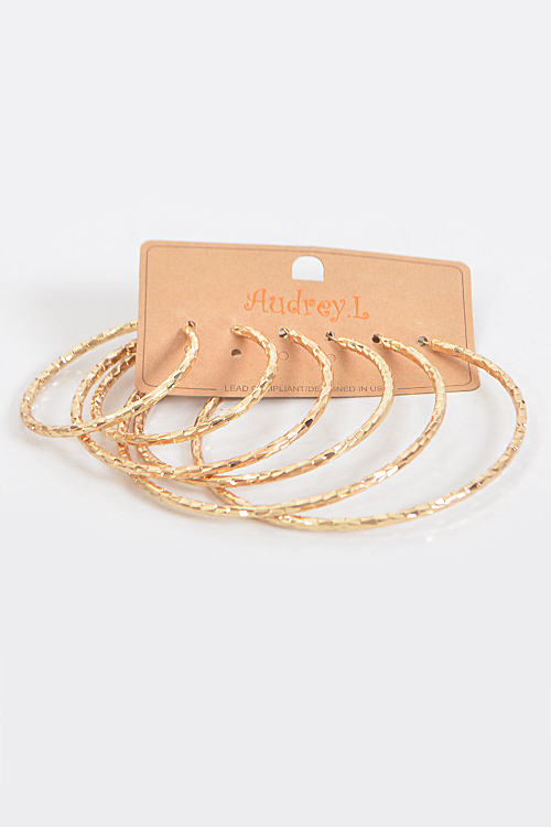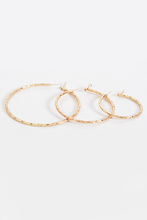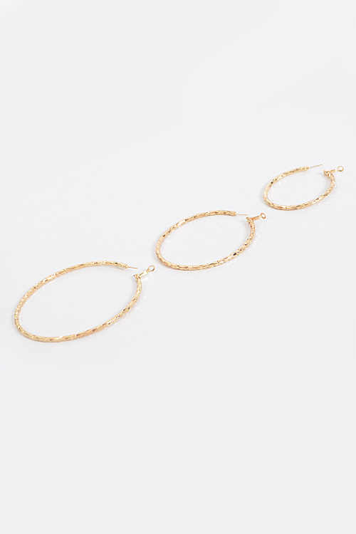 - * Scale Patterned Hoop Earrings Set * 2.25 x 2.25" approx. * 3.1 x 3.1" approx. * 3.9 x 3.9" approx.