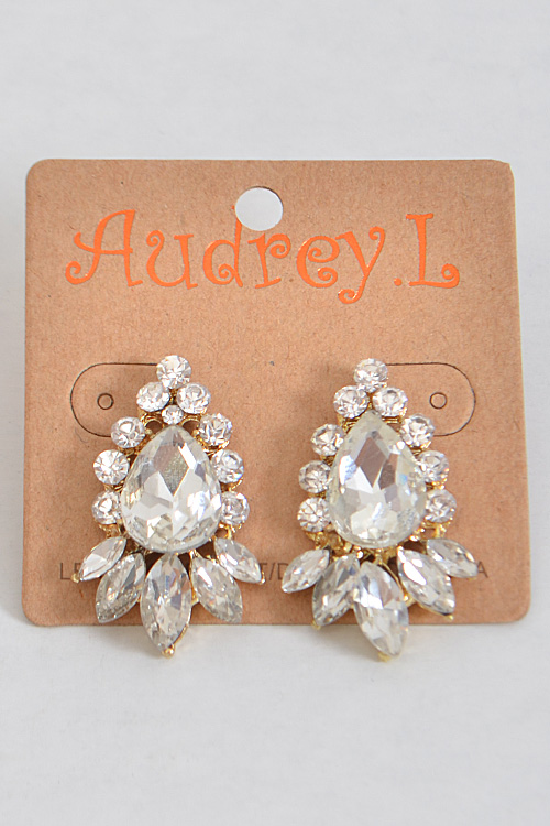 - * Rhinestone Elegant Tear Drop Earrings * 0.75 x 1.25" approx.