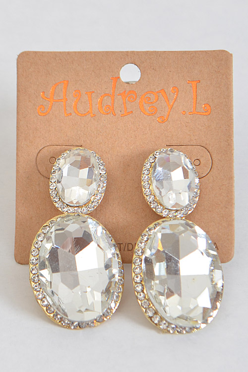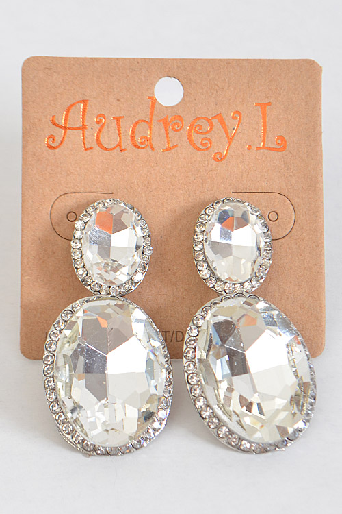 - * Oval Formal Drop Rhinestone Earrings * 0.8 X 1.75" approx.