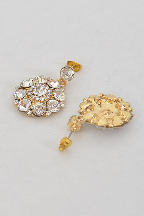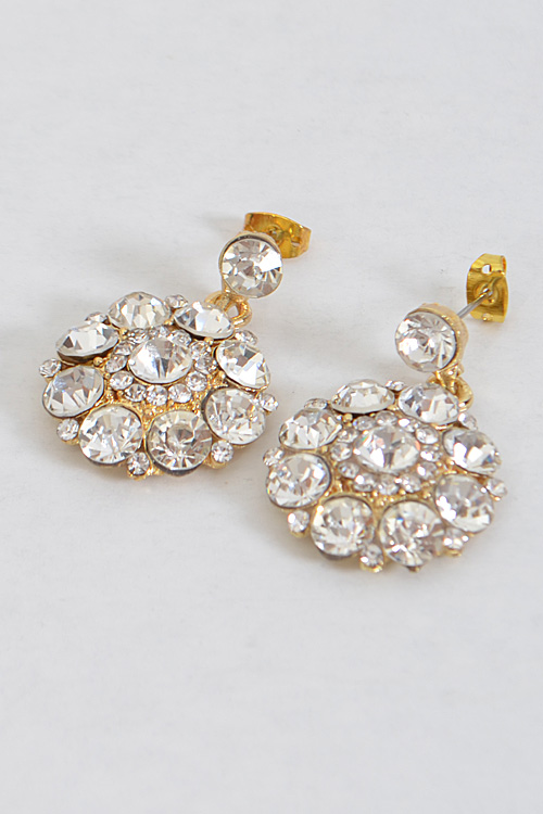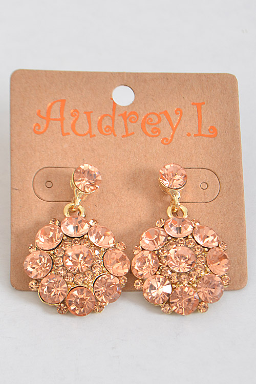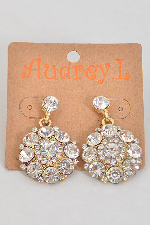 - * Rhinestone Flower Formal Shiny Earrrings * 0.9 X 1.3" approx.