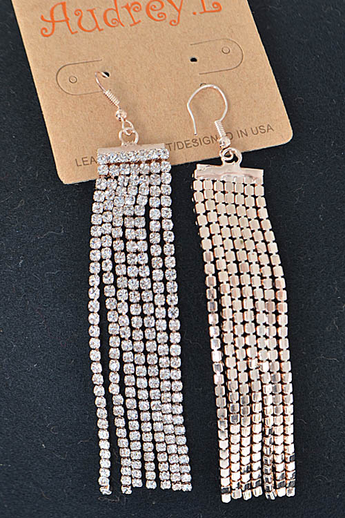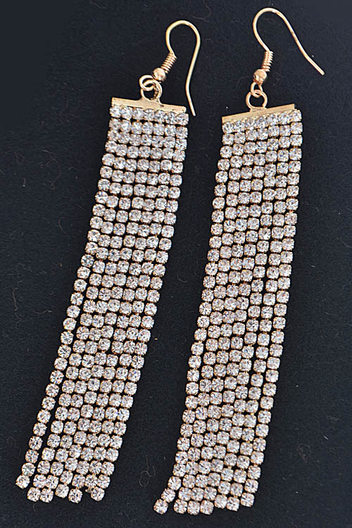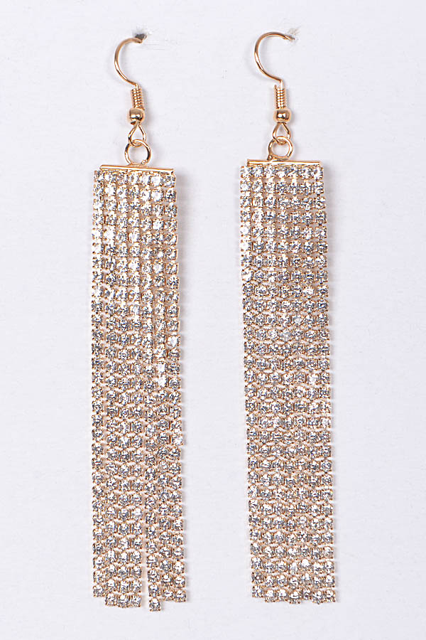 - * Drop Down Formal Rhinestone Fringed Hook Earrings