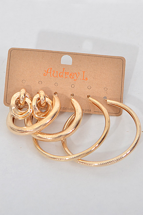 - * Fancy Hoop Earrings Set * 2.6 x 2.6" approx. * 1.75 x 1.75" approx. * 0.8 x 1.1" approx.