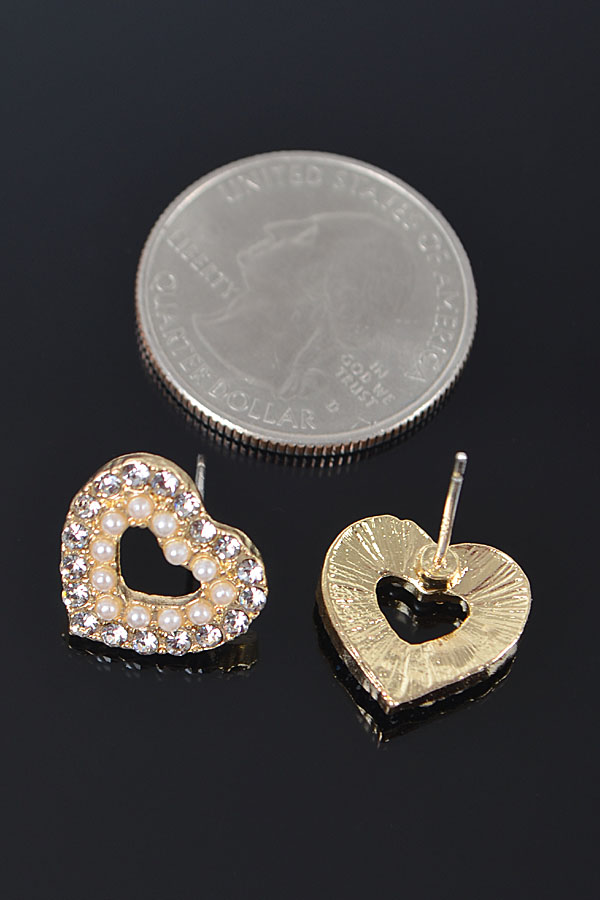 - * Heart Shape Earrings W/Rhinestone and imitation Pearl