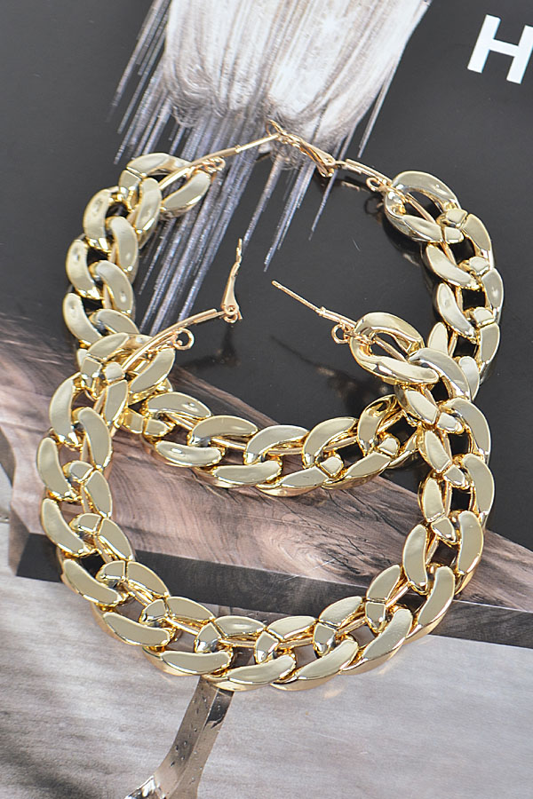 - Experience the elegance of 3AM BY H&D ACCESSORIES with our 70MM Chain Hoop Earring. With a size approximation of 3.5 X 3", these earrings are designed to make a statement. As a top-quality boutique style accessory, these hoop earrings reflect our commitment to providing the latest in the fashion industry. Located in Downtown Los Angeles fashion district, we specialize in creating pieces that are not only fashionable but also of superior quality. Make a mark with our 70MM Chain Hoop Earring.