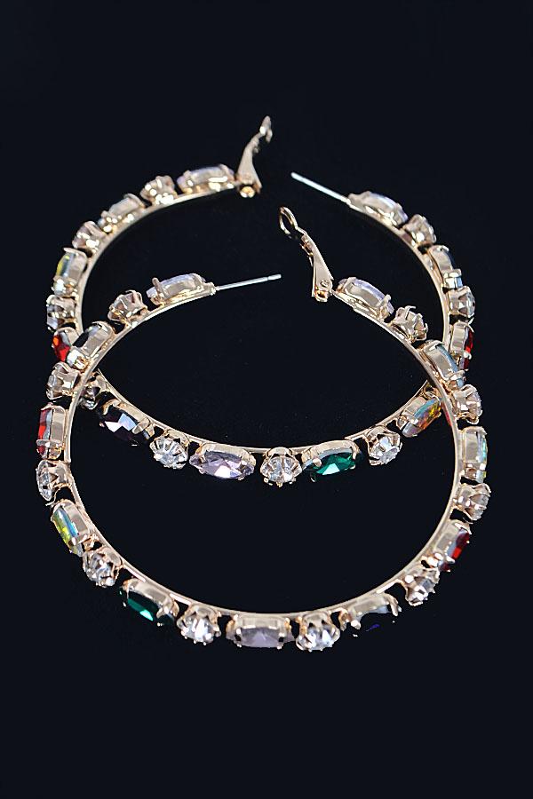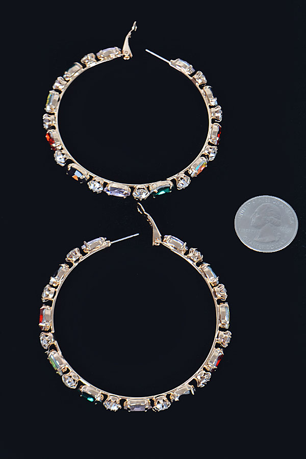 - * Multi Rhinestone Hoop Earring