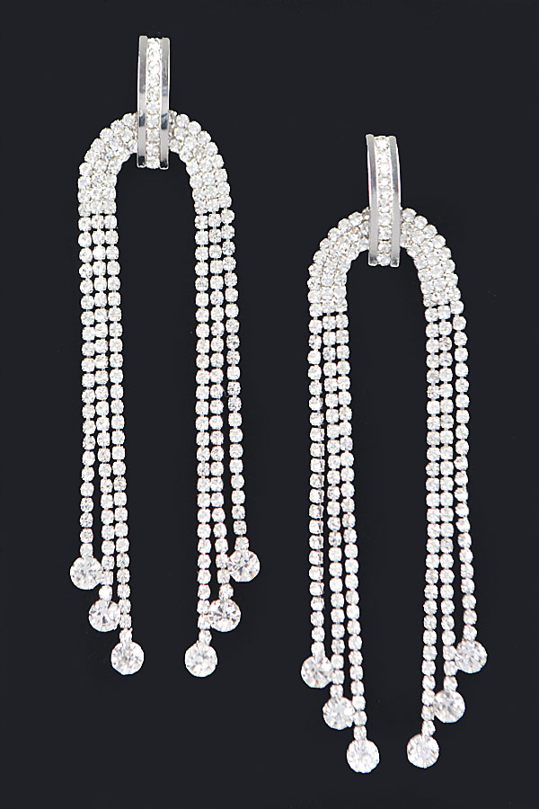 - * Introducing the "Rhinestone Fringe Earring" from H&D Accessories – a stunning blend of rhinestone and metal that will elevate any outfit. These long, luxurious earrings are designed to catch the light and turn heads, making them the perfect accessory for any occasion. With these Earrings, you can embrace sophistication and glamour effortlessly.