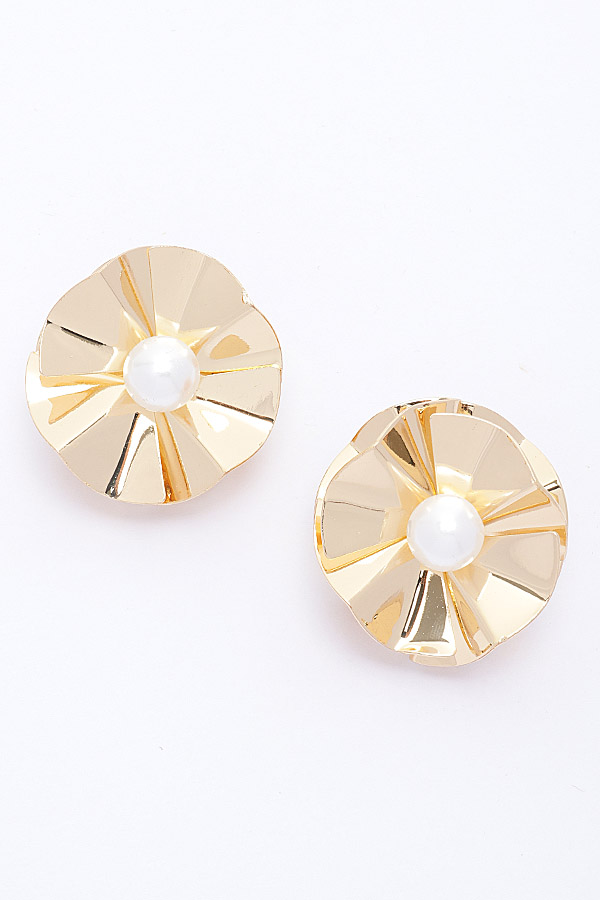 - * Introducing the "Faux Pearl Metal Earring", where sophistication meets floral charm. These stunning gold-colored flower-shaped earrings, adorned with faux pearls, are the perfect accessory to elevate any outfit. Make a statement with H&D Accessories and let your style bloom!