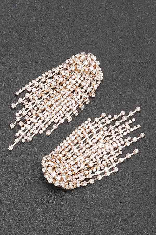 - * Introducing the "Rhinestone Fringe Earring" – a stunning pair of earrings adorned with shimmering rhinestones that catch the light beautifully. Elevate your accessory game with these exquisite pieces from H&D Accessories, designed to add a touch of elegance to any outfit.