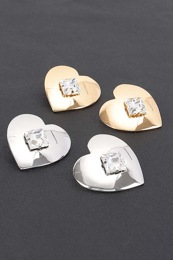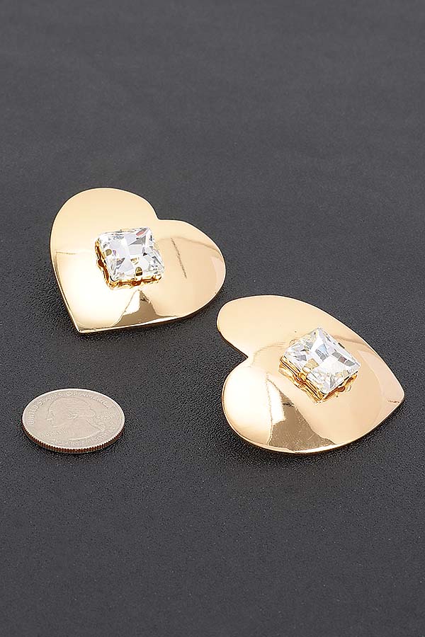 - * Introducing "Gold Plated Metal Earring" – a stunning pair of earrings that perfectly blend elegance and charm. Adorned with sparkling rhinestones, these heart-shaped treasures are designed to capture hearts and elevate any outfit. Make a statement of love and luxury with this exquisite accessory from H&D Accessories.