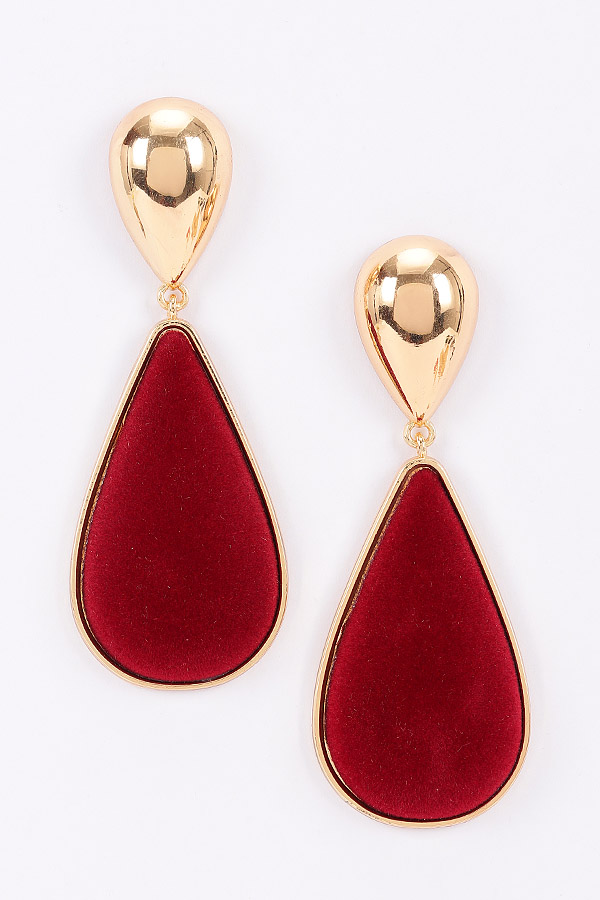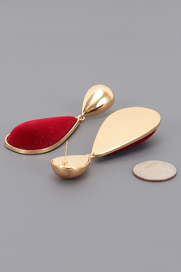 - * These Metal Velvet Earrings from H&D Accessories feature an eye-catching design. They have teardrop - shaped velvet panels framed by metal, with a polished metal top piece. The combination of soft velvet and sleek metal creates a stylish contrast. creates a stylish contrast.