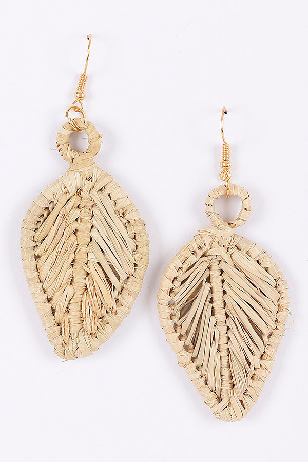 • * This Faux Straw Earring from H&D Accessories features a leaf - shaped design made of faux straw material, with delicate hooks. It has a bohemian and natural appearance, giving off a casual and stylish vibe.Ideal for adding a bohemian touch to everyday outfits, such as a simple top and jeans, when going for coffee or shopping.